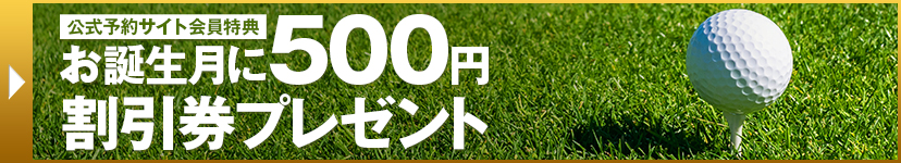 また、ご利用のお客様へ少しでもお得にプレーしていただくために、当クラブの【公式予約サイト】からのご予約を推奨しており、ご登録いただくと誕生月に500円割引券をメール配信しております。